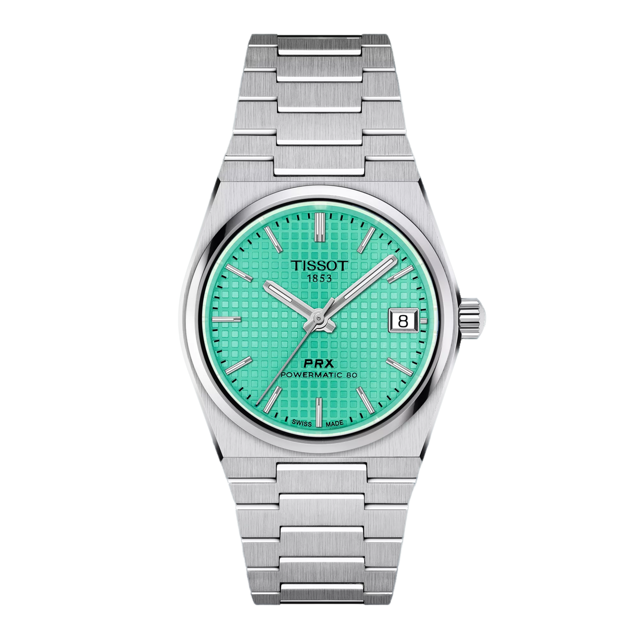 New Tissot PRX Powermatic 80 Automatic Green Women's Watch T137.207.11.091.01 Description : The Tissot T137.207.11.091.01 PRX Powermatic 80 is a versatile watch that delights both men and women. Its minimalist design and turquoise accent on the dial add to its unique appeal. Thanks to its automatic mechanism powered by wrist movements, it will always be ready for use. The sapphire glass guarantees exceptional scratch resistance, and the Super-LumiNova function ensures excellent nighttime legibility. The watch comes with a two-year warranty, which is an additional safeguard for its owner. Product Image