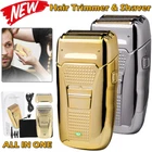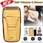 Des c ri p tion: Comfortably Fits Facial Contours: Alternate shaving design, elastic facial adjustment system, conforms comfortably to facial contours, no residue after shaving. Double Blade Design: Slim Screen Knife Net, Floating Face Adjustment to Quickly Capture Beard. Double blade design, fast cutting beards, incisive and not glued. Dual-purpose charging plug: Dual-use charging and plug, USB charging design, equipped with USB charging cable, can be connected to a variety of USB power ports, convenient charging. Multifunctional: Multifunctional, can be used to shave the bald head and shave the beard. Conforms to the ergonomic design, easy to grip and use. Easy to carry: Light and small in size, equipped with a storage bag, easy to carry when going out. Condition: 100% Brand New Item Type: Razor Material: ABS Color: Gold/Gray Power: 3w Charging Time: 5 Hours Use Time: 50 Minutes Battery: Lithium Battery 600mAh Battery Model: 14500 Razor Size: Approx. 12.5 x 6.5 x 3cm / 4.9 x 2.6 x 1.2in Weight : 270g(with box) Package List: 1 x Razor 1 x Storage Bag 1 x Transparent Cover 1 x Head Cover 2 x Half-Round Knife 1 x Cleaning Brush 1 x Manual 1 x USB Charging Cable
