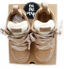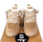 With the unmistakesble UGG feeling you know and love. This chunky shoe was designed for the everyday - wear open and loose with the laces undone or tighten them up for on-the-go. Crafted with a super-padded silhouette, the Lowmel provides just the right balance of breathability and warmth. Set on a moulded footbed and sugarcane EVA outsole, this design is best styled with loose cargos, jeans or shorts. Recycled ballistic canvas mesh, Suede upper Sand colourway, very in demand, sold out worldwide!