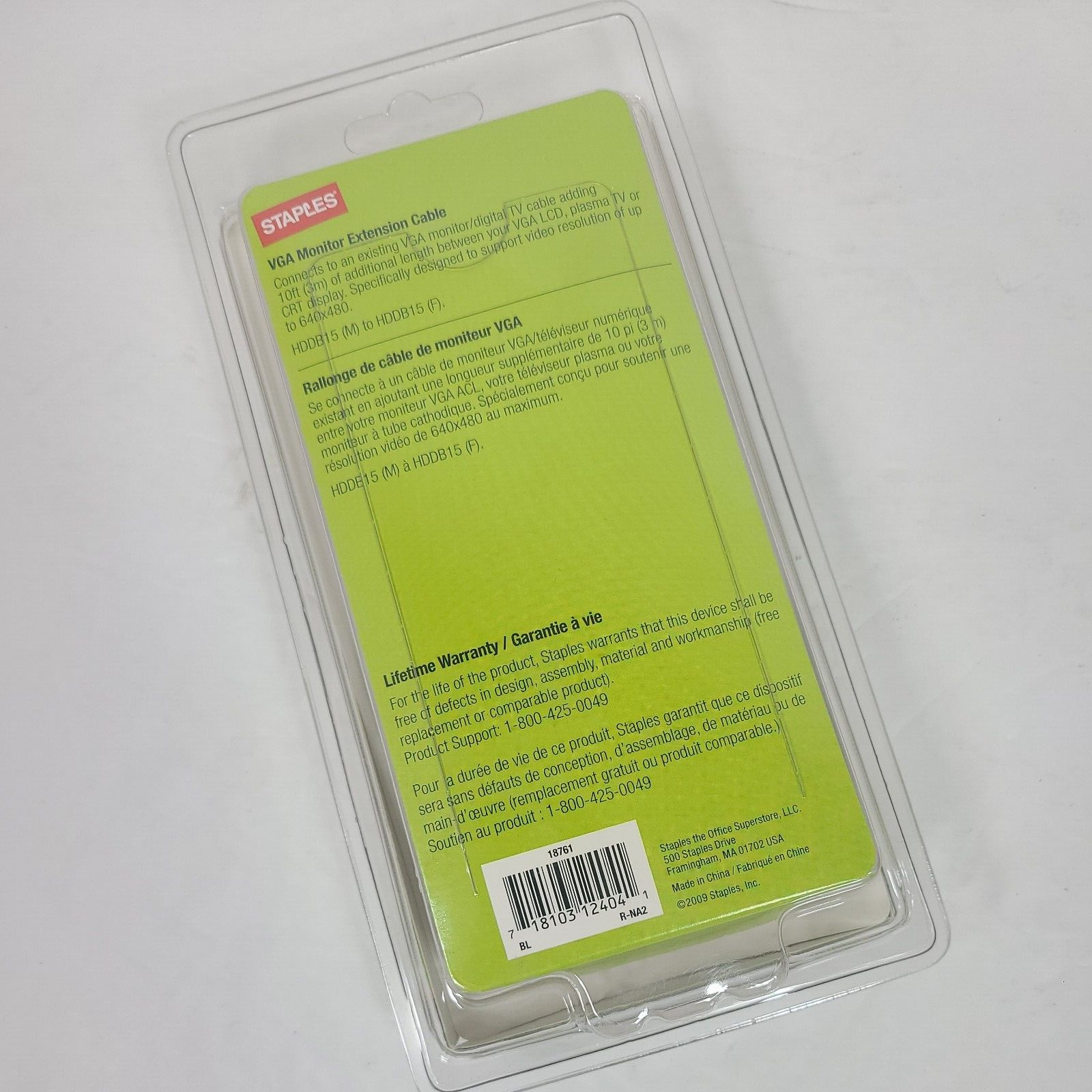 STAPLES New VGA Monitor Extension Cable #18761 10 Ft. NEW In Package Ships FAST with USPS First Class Thank You For Visiting Our eBay Store--Check Out Our Other Great Items!