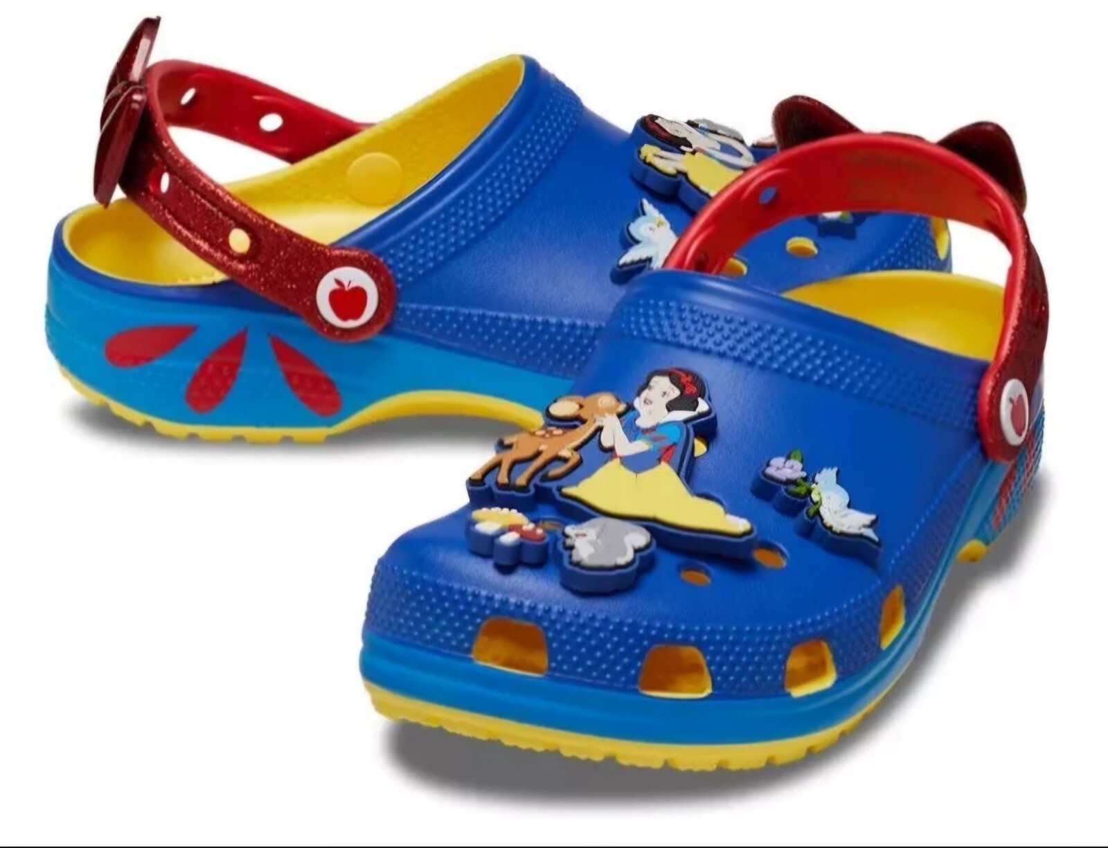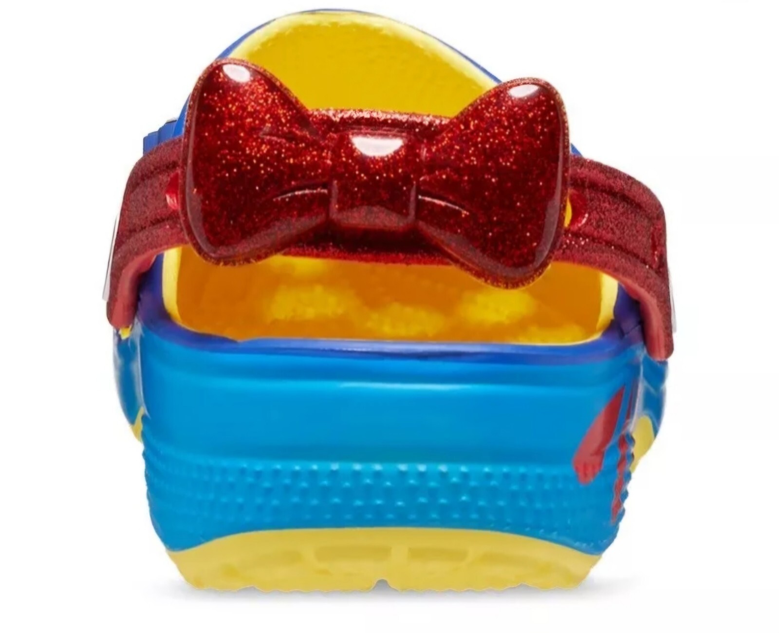 Introducing the Crocs X Disney Snow White Classic Clog, a must-have for any fan of the beloved cartoon character. These sandals feature a slip-on closure and are made of durable rubber material, making them perfect for travel, activewear, and casual occasions. The animal print pattern and blue color add a touch of uniqueness to the design. With a low heel height of 1-1.9 inches, these sandals provide both comfort and style. The insole and outsole are also made of rubber, ensuring a secure fit and long-lasting wear. These sandals are available in UK Shoe Size 7, US Shoe Size 9, and EU Shoe Size 39. Get your hands on this stylish pair of Crocs X Disney Snow White Classic Clogs today!