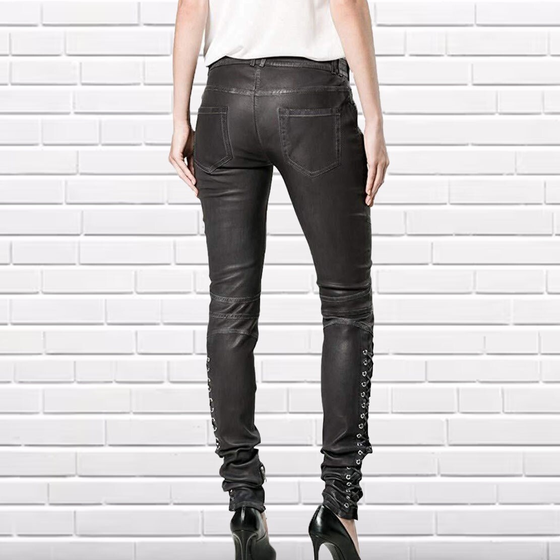 Product Description : Turn up the charm with these black lambskin leather pants featuring a classic button and zip closure 🖤👖. Delicate lacework at the bottom adds a touch of feminine elegance to their edgy vibe ✨. Perfect for a look that’s both bold and beautifully detailed 🌹. Terms of Sale This is not USA/UK/EU Size , this is standard size which you need to select as per your actual body size(waist in inches) We ship through DHL, FedEx, Aramex, and India Post. Orders are dispatched within 1–3 business days after receiving payment. For EU and other European countries, customs may charge additional taxes before delivery. Please check with your local customs office for details. These charges are the buyer’s responsibility, as we only charge for the product and shipping. All items are 100% authentic. Due to lighting and screen differences, actual colors may vary slightly, but we ensure the closest match to the original. Zipper pullers and accessories may differ from the pictures based on availability. Buyers are responsible for return shipping costs. Returns are accepted within 7 days of delivery, provided the item is unused and in perfect condition. Shipping fees are non-refundable. Customized items are non-refundable. Postage and packaging costs are non-refundable. If exchanging an item, the buyer must cover return shipping and postage costs for the replacement. Please check our size chart carefully before ordering to avoid sizing issues.