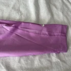 New Material body 79% polyester 21% spandex Mesh 81% polyester 19% spandex Mesh in both legs Moves sweat away Color light purple/ pink