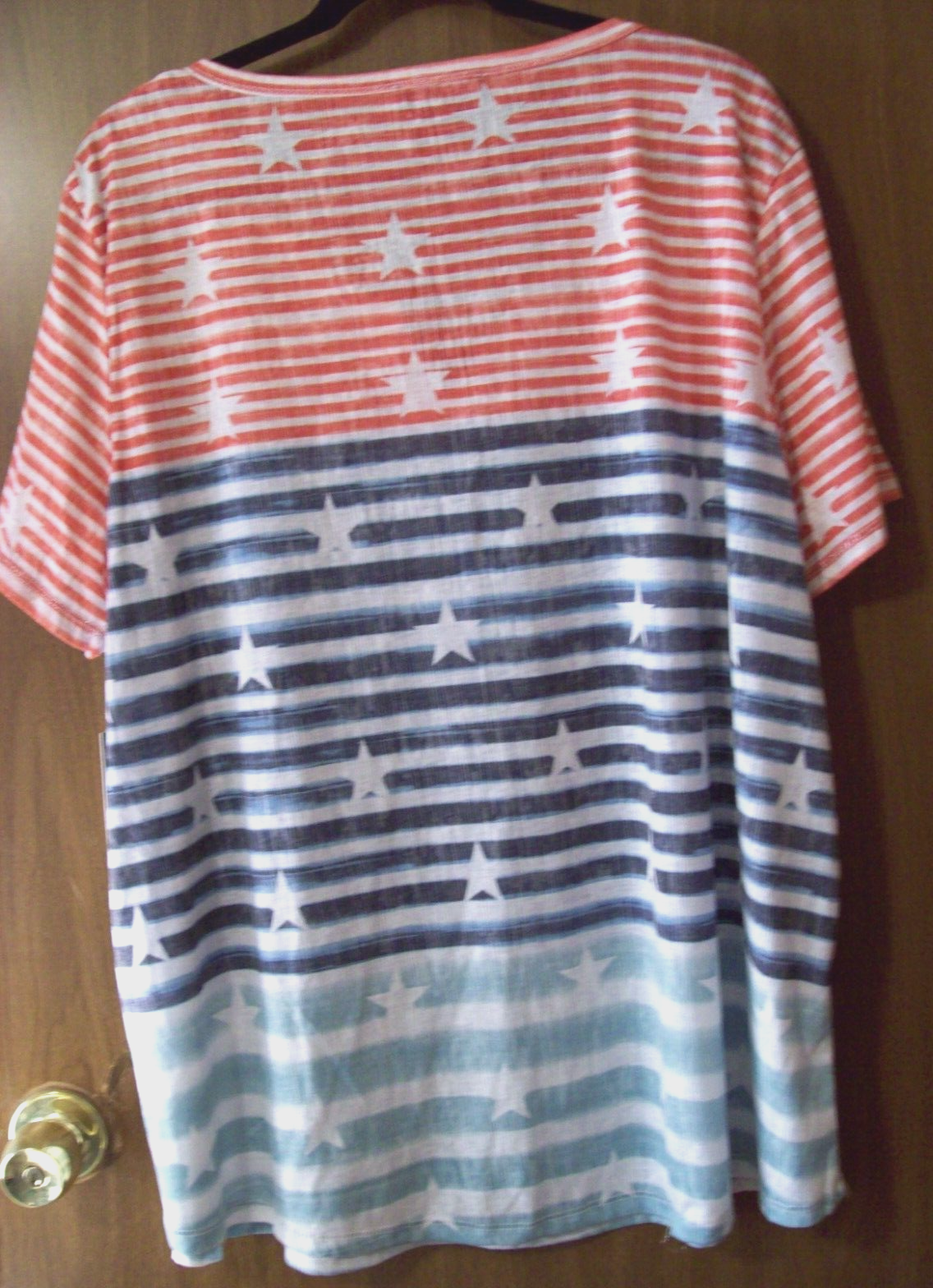 Women's Thomas & Olivia Red White & Boom top Stars & Stripes Patriotic, rhinestone star accents, made to look faded New with tag (see photos) Size 3X Armpit to armpit is 25", from top of shoulder to hem is 29"