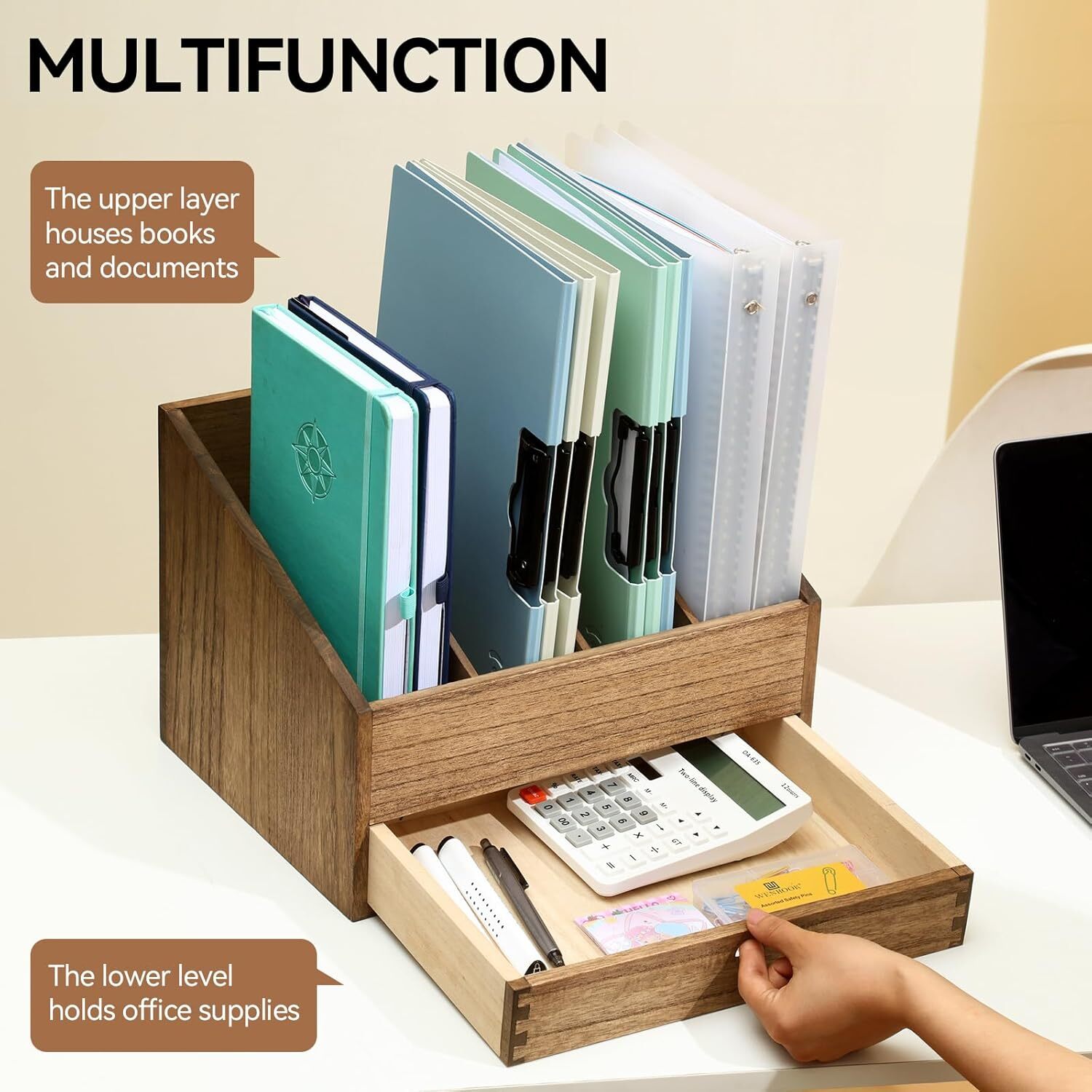 New Wooden Desktop File Organizer with 4 Compartments for Mail and Documents