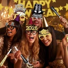 Ring in the New Year with this ultimate party pack! It includes everything you need to celebrate in style. Kick off the festivities with the eye-catching 2026 gold foil balloon numbers and a glittering "Happy New Year" banner. Get the party started with fun accessories like tiaras, hats, glasses, horns, and necklaces in festive black and gold designs. When the clock strikes midnight, toast with the included blowers and noisemakers. This comprehensive kit has enough supplies for 12-20 people, making it perfect for hosting a lively gathering or ringing in the new year with close friends and family. Usher in 2026 with joy and merriment using this all-inclusive celebration set. Package Includes: This 2026 New Years Eve Party Supplies set doubles as both decorations and party costumes, including 32 inch "2026" foil balloons, 1 Happy New Year banner, 6 plastic top hats, 6 New Year's headbands, 6 party horns, 6 squawkers, 6 glasses, 6 leis and 6 necklaces Premiun Quality Materials: Made with durable plastic, foil, and cardboard, these accessories are both stylish and sturdy. Whether you're wearing a lei necklace or making noise with a party horn, all items are designed for comfort, safety, and endless fun. Perfect for 12 Guests: Designed for up to 12 guests, this kit includes enough accessories for everyone to join in the fun. From top hats to party horns, every guest can celebrate together in style with coordinated and festive items. Suitable for All Ages: Our Happy New Year Decorations 2026 Pack is perfect for adults and children! It includes the most adorable party hats, measuring 11 x 4.72 inches, and a festive New Year's headband, measuring 7.48 inches New Year’s Eve Theme: Featuring elegant black, gold, and silver colors with “2025” designs, this set perfectly captures the New Year’s spirit. Whether you're hosting a family gathering or a party with friends, these accessories are ideal for creating unforgettable memories and amazing photo opportunities.