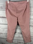 These New York & Company ankle pants are designed for women in size X-Large, featuring a red and white argyle/diamond pattern. The pants have a slim fit with a flat front and a pull-on style, complete with a zipper closure and pockets for added functionality. Made from breathable cotton material, these ankle pants are suitable for both casual and formal occasions, offering comfort and style with a 25-inch inseam and a skinny leg design. Perfect for outdoor activities in all seasons, these pants are machine washable for easy care.