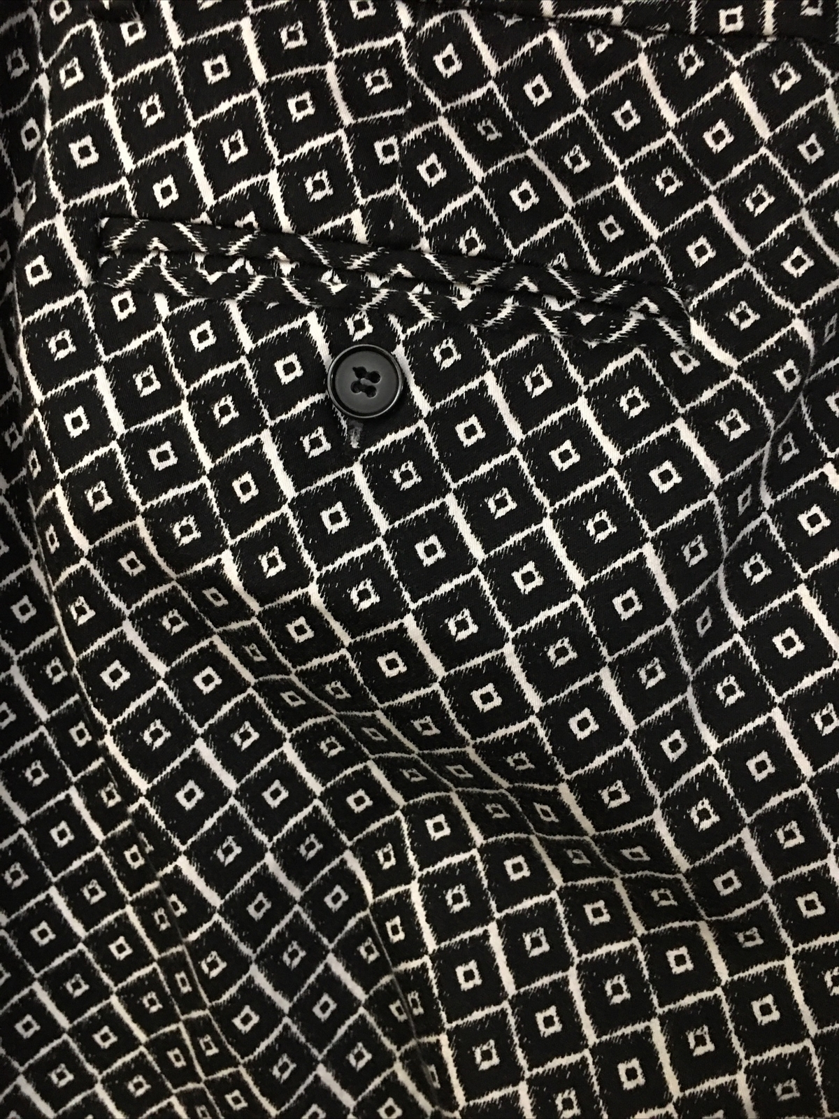 Women’s Black Capris Pants Size 8 Black Geometric Diamond Print. Condition is Pre-owned. Shipped with USPS Ground Advantage.