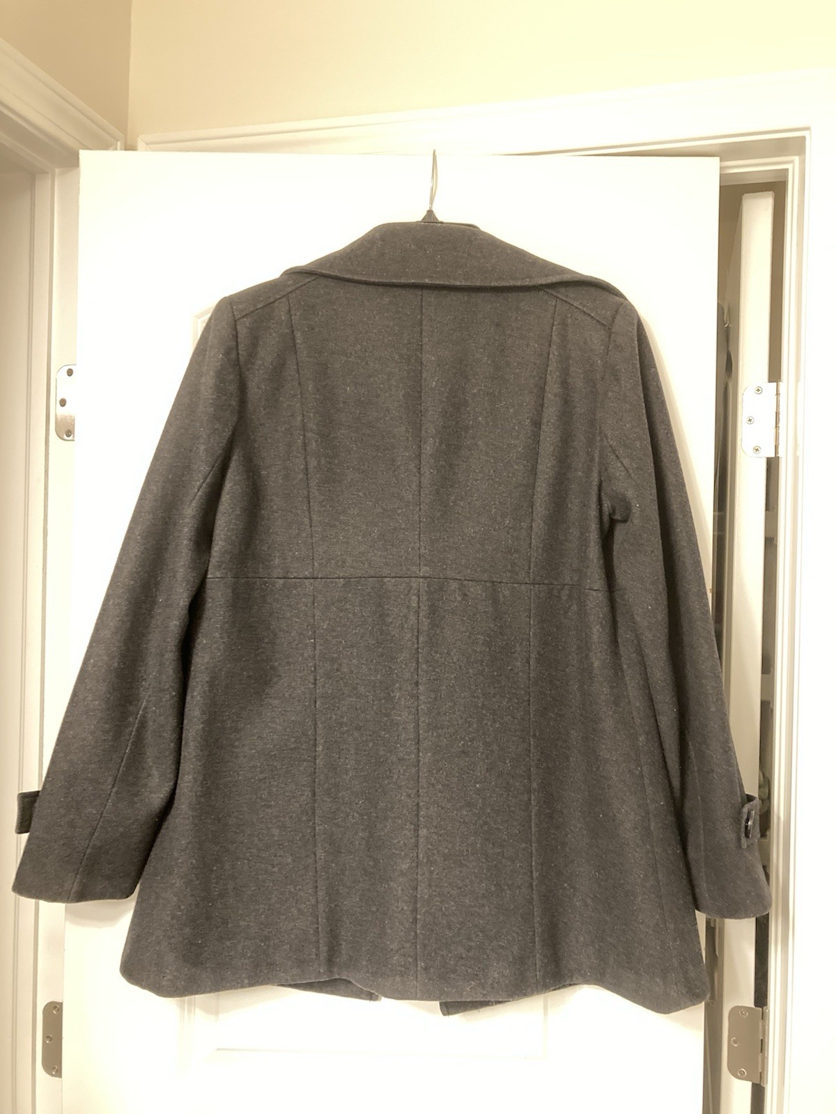Timeless gray pea coat that will complement any outfit this fall and winter. Very warm and high quality coat. It’s gently used (some cosmetic wear on sleeve buttons) but the overall shape of the coat is fantastic. Freshly dry cleaned so it is ready to be yours! Measurements: Pit to Pit: 19 inches Length: 30 inches About my listings: -Fast shipping! I ship same day or next business day. - I am always open to offers! - All items are from a smoke free and pet friendly home. - All clothing is freshly washed unless new with tags and sealed after pictures. - I am happy to answer any questions or resolve any issues!