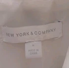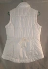 This New York & Company Women's White Puffer Vest is a stylish and versatile outerwear option for the modern woman. Made from durable polyester, this vest features a full zip and snap closure, making it perfect for layering during the winter, fall, and spring seasons. With a classic puffer style, collared neckline, and convenient pockets, this vest offers both warmth and functionality. The designer touch and outdoor theme add a trendy flair to this must-have wardrobe essential. Easy to care for with machine washable instructions, this vest in size M is a practical and fashionable choice for any occasion.