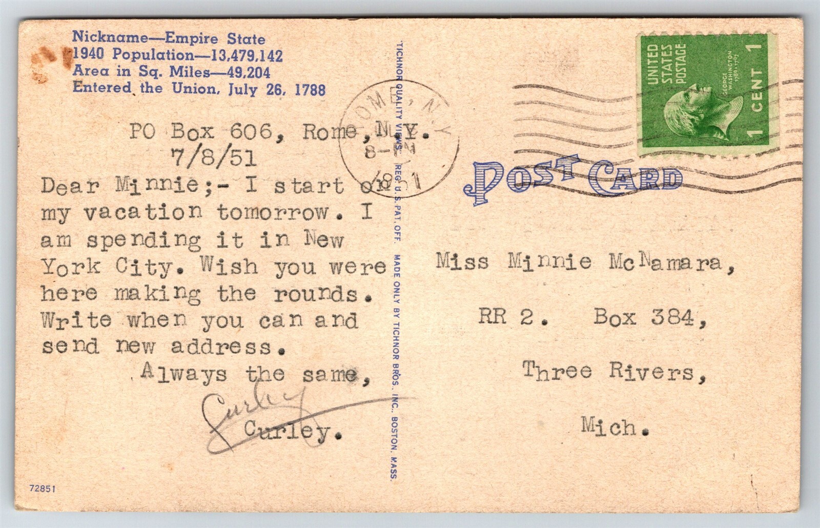 New York Large Letter Greetings NY C1950s Postcard Y21 Thank you for visiting! This is a standard size postcard, 3.5" X 5.5". In stock, usually ships within 24 hours of your purchase. Please ask questions if you are unsure about anything. Our goal is for your complete satisfaction with the postcard and your experience. Check all my other listings in my store. RETIREDWITHBOOKS Powered by SixBit's eCommerce Solution