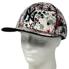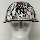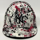 New York NY Yankees Wool Blend Baseball Cap Hat Fitted 7 1/2 Paint Splatter New Era 5950 59Fifty White Six Panel Will be shipped in a box. CONDITION: Has some minor staining on the sweatband. No other flaws noticed. Has been cleaned and sanitized. See photos.