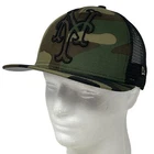 New York NY Yankees Camo Trucker Hat Baseball Cap Fitted 7 1/4 New Era 5950 59Fifty MLB Army Military Camouflage Mesh Back Six Panel Black Will be shipped in a box. CONDITION: Has minor staining on the sweatband. No other flaws noticed. Has been cleaned and sanitized. See photos.