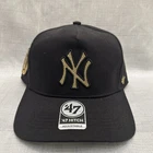 This is an officially licensed '47 Brand x Rawlings Hitch Adjustable Cap Hat for men, featuring the New York Yankees logo. It is designed in black with a one-size-fits-all style, suitable for fans of Major League Baseball.