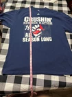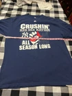 Show your love for the New York Yankees with this officially licensed Majestic baseball shirt. Featuring the team's iconic logo and colors, this unisex adult shirt is perfect for fans who want to make a statement. Made with high-quality materials, this XL shirt is comfortable and durable enough to wear all season long. Whether you're at the game or watching from home, this shirt is sure to turn heads and show your support for one of the best teams in Major League Baseball. Get your New York Yankees Crushin' Red Sox Nation All Season Long T-Shirt today!