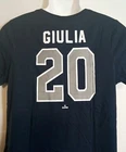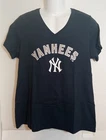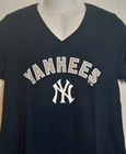 NWT. Step up your game day attire with the New York Yankees Fanatics Women's Blue V-Neck Shirt. Designed to celebrate your favorite MLB team, this comfortable large-sized tee boasts a stylish blue hue, complemented by the iconic "YANKEES" front graphic and logo that showcase your allegiance to the team. Crafted for both spirit and comfort, the shirt features a feminine V-neck cut and precise measurements with a pit to pit width of 20 inches and a length of 27 inches. The back graphics add a touch of personality with the number 20 and "GIULIA" meaning youthful. Proudly made in El Salvador, this shirt is a must-have for any Yankees enthusiast looking to combine fashion with fan pride. H3 BOX - 1517