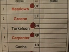 This is a unique opportunity to own a piece of baseball history. The New York Yankees Game-Used Lineup Card vs. Detroit Tigers 3/23/24 features Ben Rice, a talented player who has made a mark in the MLB, as well as other Tigers such as Javier Baez, Spencer Torkelson, and Riley Greene. This card is officially licensed, framed, and signed by Detroit Tigers player Bligh Madris, making it a valuable addition to any sports memorabilia collection. The card's dimensions are 11x17 inches, and comes shipped in a 12×18 inch frame. The card was used in the dugout of a game during MLB Spring Training, and it is a rare find for any fan of the sport. It is perfect for those who love the Yankees, Tigers, or baseball in general. This product type is MLB Game Used Lineup Cards, and it is a must-have for any collector.