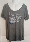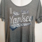 NWT. Embrace your team spirit with this New York Yankees women's gray shirt, a genuine MLB merchandise item that's perfect for any baseball enthusiast. Made in the Dominican Republic, this size large shirt offers both comfort and style, measuring 21 inches pit to pit and 32 inches in length, ensuring a relaxed fit for everyday wear. Showcase your allegiance to the Yankees with this classic gray tee, an essential addition to your collection of sports memorabilia. Whether you're at the game or just out and about, this shirt is a subtle yet fashionable way to celebrate your favorite Major League team. H3 BOX - 1516