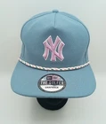 NWT. Sport your team spirit with the New York Yankees New Era Golfer Snapback Cap. This cap is a perfect blend of style and comfort for any baseball enthusiast. Featuring the iconic NY logo embroidered in pink on the front, it's a distinctive piece of fan apparel that adds a pop of color to your gear. The cap is designed with a snapback closure ensuring a comfortable, adjustable fit for all-day wear. Crafted by New Era, known for their quality and durability, this cap is a must-have accessory for any Major League Baseball fan, regardless of gender. Whether you're at the game or on the streets, show your support with this striking blue cap. H1 BOX - 1558