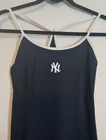 NWT. Step up your wardrobe with the Lusso New York Yankees Racerback Women's Dress, a stylish blend of comfort and team spirit. Perfect for any casual event or when you're out traveling, this sleeveless mini dress in a vibrant blue color is a testament to your love for the game. With a snug, comfortable fit and adjustable straps, it's designed to flatter your figure while ensuring you stay comfortable throughout the day. Crafted from a soft mix of polyester and spandex, this dress boasts a solid pattern that exudes a minimalist charm. The front showcases the iconic Yankees logo, adding a touch of brand loyalty to your ensemble. Measuring 15 inches pit to pit and 26 inches in length, this XS dress is a versatile addition to your summer, spring, or fall collection. H3 BOX - 1514