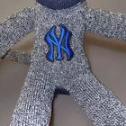 Embrace your love for the New York Yankees with this unique 18” Sock Monkey stuffed animal. Decked in a timeless gray color, this plush embodies the spirit of America's favorite pastime and is a charming addition to any baseball enthusiast's collection. The meticulous attention to detail reflects the handmade quality, making it a distinctive piece for fans and collectors alike. Not just a collector's item, this plush is perfect for children who adore the Yankees and want to show their support during the regular season and beyond. Proudly made in the United States, it's a whimsical celebration of the team's legacy, albeit in a playful, unbranded form that captures the heart of the sport.