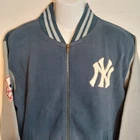 NEW. Step up your game day style with the Wright + Ditson Full Zip-Up Jacket in a striking blue hue, sized large for a comfortable fit. Showcasing your loyalty to the New York Yankees, the jacket features prominent embroidery with the iconic 'NY' on the left chest and the Yankees logo on the right arm sleeve and pockets, perfect for any die-hard fan. Crafted with care, this unisex adult jacket offers a practical pit to pit measurement of 24 inches and a comfortable length of 30 inches. Whether you're cheering from the stands or out and about, this jacket, made in China, combines fashion with your passion for America's favorite pastime. H2 BOX - 1409