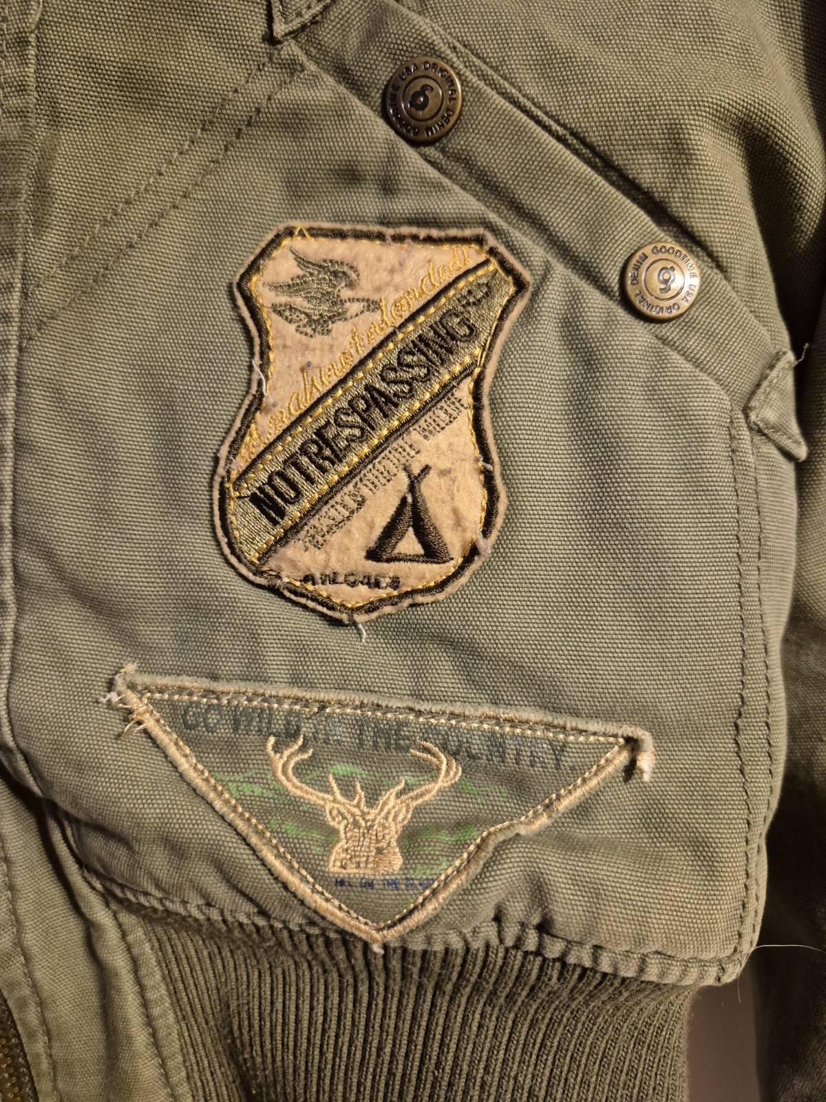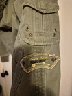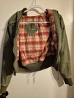 The "Good time a new tradition medium green farmer jacket" is a stylish bomber jacket designed for women. Made from cotton with a solid green color, this short jacket features long sleeves and a full zip closure with snaps. Lightweight and suitable for all seasons, this versatile jacket is perfect for travel, casual wear, or workwear. With its regular fit in size M, this jacket is a great addition to any wardrobe, offering both comfort and style for the modern woman.