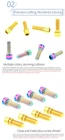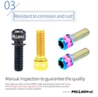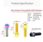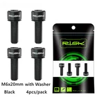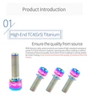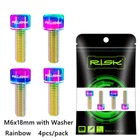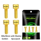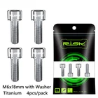 4pcs M6x18mm M6x20mm Titanium Alloy Mountain Bike Disc Brake Fixing Bolts Screws With Washer for MTB Bicycle Name: RISK Titanium alloy disc brake clamp fixing screws with grooved gaskets Specification: M6x18mm M6x20mm with grooved gasket Packing: 4 pcs / Boxed Color: black, golden, rainbow, titanium Level: TC4 Weight: 3.2g/ pairs Titanium Disc Brake Fixing Bolts With Washer Unfulling Washer Gr5 Titanium Alloy PVD Coating Unfulling Washer Not Faded, Not Rust 4pcs/Box For one Bicycle Product Specification Disc Brake Fixing Bolts With Washer Specs: M6X18/20mm Tool: 5mm Allen Key Torque: 10-12N.M N.W:2.97g/3.17g Unit:mm 18 (WithWasher) 20 (WithWasher) M6 9 6 5mm Allen Key Product Introduction High-End TC4(Gr5)Titanium Ensure the quality from source RISK titanium alloy series products are made of high-standard aerospace grade TC4(Gr5) titanium material, rejecting secondary melting or inferior materials of insecure quality.Each batch of raw materials is strictly tested by metal Testing, truly control and ensure the quality of products from the source. Precision crafting,Wonderful coloring Multiple colors, stunning collision The surface of RISK titanium alloy screws is colored by PVD(physical vapor deposition)vacuum nitride coating technology, and other composed of TiN,TIALCN and other compounds is formed on the surface of the screw to improve the surface wear resistance and hardness, also makes the screws more beautiful and long-lasting, not faded. Close and meticulous screw thread Each screw is machined by a fully automatic thread rolling machine, which not only ensures strength, but also improves fastening.At the same time also improved the overall screws smoothness, brighter, more dazzling, more eye - absorbing. Resistant to corrosion and rust Manual inspection to guarantee the quality Each titanium alloy screw of RISK is fully inspected by hand and comes with RISK genuine laser engraved LoGO, ensuring that every one that reaches the customer's hand is perfect. Unfulling Washer Enlarge contact area to protect accessories During the screw fastening process,the gasket can expand the contact area with each other, reduce the stress concentration of the fastening force and scratch on the fitting. The gasket can move freely on the head of the screw, but it will notfall.So it can be easily disassembled and used to prevent the gasket from being lost. Cool,not the intention; SuperLight, not the gimmick; Hardness, not the bombastic; Everything we did, Just for a better cycling experience!
