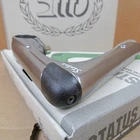 New-Old-Stock 3T Status Quill Stem w/Gray Finish (25.8 mm / 26.0 mm clamp x 105 mm length)...Nice Clamp Expansion Design Feature Thank you for your interest in this item and please visit our store for other offerings. We have very reasonable shipping terms and combine orders to save money (for customers) on shipping costs. We also maintain customer friendly return/refund/exchange policies. Product Description: This item for sale is a new-old-stock 3T Status quill stem. These Italian made stems are very good quality, as they are forged from an aluminum alloy (AL 6082) and were positioned as one of 3T's "Racing Team Services" quill stems (so manufactured to withstand the stresses and demands of competitive cycling/racing). We also like the brownish gray (anodized) finish, as it compliments the stem's sleek styling (which is somewhat unique...the styling that is...among 3T's competition level quill stem offerings). Some of it's more prominent design features and specs include the following... Body length: 105 mm (measured from a profile view of the stem body as a straight line that extends from the center of the quill to the center of the bar clamp) Body angle: 72 degrees (or said another way...a negative 18 degree rise) Quill length: 75 mm (the distance between the limit line and the top of the quill...inclusive of the dust cover, if applicable) Clamp: 25.8 to 26.0 mm (fairly common sizing for many vintage drop handlebars) Quill diameter: 22.2 mm (common size compatible with most 1" threaded forks) Weight: 255 grams (per our digital postal scale and inclusive of all mounting hardware) We also want to point out the 3T Status model is one of only a few Racing Team Services' models (with forged aluminum alloy construction) that has a one-piece clamp design and a partially hidden clamp bolt (meaning the clamp bolt is nicely tucked away on the underside of the stem body). We mention this because some of our colleagues believe there may be inherent weakness in stem clamps when the design includes a detachable face plate or is hinged in some manner. The thought here is that anything other than a solid/continuous (one-piece) design using forged alloy materials is going to result in potential weakness at the pivot (hinged) points or anchor points (in the case of detachable face plates). We do not have any hard data to substantiate these claims, but we thought the discussion points were still worth noting. Having said all of this, we do believe (and think most would agree) that a solid one-piece clamp design is at least equal in strength and durability to the other designs available on the market. The drawback, of course, is the inconvenience of handlebar installation relative to some of these other designs (although, as noted below, 3T modified the design of the traditional one-piece clamp with their Status model to facilitate the handlebar install/uninstall task). It's been our experience that most of these one-piece clamps are only threaded in the main body of the stem. In other words, a clamp bolt will slide through the first section of the bolt-hole, but will not thread until it reaches the the bolt-hole section in the main body of the stem...at which time the clamp bolt will thread and cinch down on the handlebars. The 3T Status stem is different in that it's bolt-hole is also threaded in this first section. 3T's reason for this added design feature is to aid in the expansion of the stem clamp to facilitate handlebar installation. This is accomplished by completely unthreading the clamp bolt, pulling out the rubber washer/spacer and inserting/holding a coin (or equivalent small/flat metal object) in place of the rubber washer/spacer. Once the coin is in place, re-thread the clamp bolt until the end of it comes into contact with the coin. At this point, continue to slowly thread the clamp bolt and the added pressure applied to the coin (while not allowing the clamp bolt to enter the main body of the stem) will slowly expand the stem clamp opening without marring the finish on the bars or stem. The bars still have to be clean (meaning no tape, cable, levers, etc.) to install/uninstall them...so this feature is still not the equivalent of a hinged design or detachable face plate in terms of convenience. However, we thought the preservation of cosmetic condition during the install/uninstall process with one of these stems was still worth noting...and a nice feature not commonly found on stems with solid one-piece clamp designs. We are spending a little more time inspecting each of these retail boxed stems, as we near the end of our stocks. Honestly, we may be splitting hairs with some of these inspections, as none of them are cosmetically perfect upon close scrutiny. Although, any cosmetic issues are usually fairly minor and may consist of, among other things, small blemishes in the form of forging/finishing imperfections coming out of the factory. In other words, we sometimes observe small/shallow dimples, pin-sized holes, thin lines, etc. in the stem body that appear to be the result of an imperfect forging process. We believe this to be something that occurred at the factory, because the anodized finish does not appear to be disturbed in these areas...meaning the finishing/anodizing process was completed after the forging imperfections were created. We also see some instances where the stem may not have been properly cleaned prior to the anodized finishing work. More specifically, there may be some other small cosmetic irregularities on the stem body (i.e., there may be some small/residual metal pieces, etc. that should have been cleaned/removed from the stem body, but were instead covered by the anodized finish). Lastly, we will sometimes identify some shopwear (i.e., light scuffs/scratches) in the anodized finish that is likely the result of several years of storage time. Listing Update...We have begun updating the pictures to reflect the next stem that will sell/ship. Although, please keep i