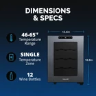This countertop wine cellar is designed to be seen and not heard. The Newair Shadow-T Series 12 Bottle Thermoelectric Wine Fridge delivers the ultimate storage system for your collection, whether you’re new to wine or a lifelong connoisseur. Ultra-quiet thermoelectric cooling eliminates vibrations that can disturb sediment and destroy the delicate flavors of your wine. The sleek, compact design features a black mirrored glass door with a frameless design and hidden hinge. The triple-pane glass blocks harmful UV rays to protect your wine’s flavor and aroma while resisting smudges and fingerprints. This modern and durable wine mini fridge boasts a user-friendly control panel that is seamlessly built into the glass, making it effortless to select the perfect temperature for your reds, whites, and sparklers. Preserve Wine Perfectly With Vibration-Free Cooling Ultra-quiet thermoelectric cooling minimizes vibrations that can stir up sediment and ruin the flavor of your wine. It also uses less electricity than traditional compressor refrigerators, so you can spend less on energy bills and more on your wine collection. Frameless Mirrored Door With Triple-Pane Glass Triple-paned glass provides excellent insulation to keep harmful heat and UV light out of your fridge and away from your wine. The black mirrored glass resists fingerprints and smudges, so it always looks sharp. The control panel is built right into the glass for a streamlined look and added durability, and there’s an easy-to-read LCD touchscreen display. Compact, Freestanding Design At just 10 inches wide and under two feet high, this compact cooler is the perfect size for countertop wine storage. The integrated, hidden hinge and recessed handle save even more space for a sleek design that works in kitchens, home bars, media rooms, and more. Soft LED and Black Shelves Wine flavors are delicate, which is why the Newair Shadow-T Series wine fridge features a blue, soft LED light that illuminates your collection without emitting harmful heat like a standard lightbulb. Coated wire shelves grip and cradle wine bottles for easy organization.