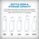 This countertop wine cellar is designed to be seen and not heard. The Newair Shadow-T Series 6 Bottle Thermoelectric Wine Fridge delivers the ultimate storage system for your collection, whether you’re new to wine or a lifelong connoisseur. Ultra-quiet thermoelectric cooling eliminates vibrations that can disturb sediment and destroy the delicate flavors of your wine. The sleek, compact design features a black mirrored glass door with a frameless design and hidden hinge. The triple-pane glass blocks harmful UV rays to protect your wine’s flavor and aroma while resisting smudges and fingerprints. This modern and durable wine mini fridge boasts a user-friendly control panel that is seamlessly built into the glass, making it effortless to select the perfect temperature for your reds, whites, and sparklers. Preserve Wine Perfectly With Vibration-Free Cooling Ultra-quiet thermoelectric cooling minimizes vibrations that can stir up sediment and ruin the flavor of your wine. It also uses less electricity than traditional compressor refrigerators, so you can spend less on energy bills and more on your wine collection. Frameless Mirrored Door With Triple-Pane Glass Triple-paned glass provides excellent insulation to keep harmful heat and UV light out of your fridge and away from your wine. The black mirrored glass resists fingerprints and smudges, so it always looks sharp. The control panel is built right into the glass for a streamlined look and added durability, and there’s an easy-to-read LCD touchscreen display. Compact, Freestanding Design At just 10 inches wide and under two feet high, this compact cooler is the perfect size for countertop wine storage. The integrated, hidden hinge and recessed handle save even more space for a sleek design that works in kitchens, home bars, media rooms, and more. Soft LED and Black Shelves Wine flavors are delicate, which is why the Newair Shadow-T Series wine fridge features a blue, soft LED light that illuminates your collection without emitting harmful heat like a standard lightbulb. Coated wire shelves grip and cradle wine bottles for easy organization.