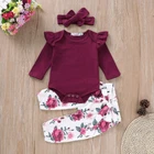 Description Features: Condition: 100% Brand New Material: Cotton Blend Style:Casual Pattern Type: Floral Collar Type:Round Neck Sleeve Length: Long Sleeve Occasion: Casual, Everyday, Party Size chart: Recommend Age Tops Length CM Tops Length Inch Bust CM Bust Inch Pants CM Pants Inch 0-3 Months 36 14.17 46 18.11 36 14.17 3-6 Months 38 14.96 48 18.90 39 15.35 6-12 Months 40 15.75 50 19.69 42 16.54 12-18 Months 42 16.54 52 20.47 45 17.72 Package Content: 1 x Romper 1 x Pants 1 x Headband NOTE: 1.Please compare the detail sizes with yours before you buy!!! 2.Colors may be slightly different depending on computer and monitor settings 3.Please allow 1-3cm differs due to manual measurement, thanks (All measurement in cm and please note 1cm=0.39inch) Thanks for your understanding. Detail Image Shipments & Payment: Your order will be handled within 1-2 business days after receiving your clear payment. Weekend excluded Tracking number will be provided for you ASAP. We accept PayPal. Return Policy: If you are not satisfied with the items, you can return for refund within 30 days after receives it. Buyer pay the shipping cost for return. contact me for the return address, we will refund your money within 2 days after receive the returned items. About Feedback: I appreciate your Positive comment and 5 star DSR(Detailed Seller Ratings) if you are satisfied with the items and my job, I will do better because of your encouragement. Also I will leave Positive feedback to you once I receive yours, thank you very much! Please do Not leave Neutral or Negative feedback and low DSR if you are not happy with the transaction, I think most problems can be resolved through sincere communication. We try our best to reply to your emails ASAP. However, due to high volume of daily incoming emails and time zone difference, we may not be able to reply your emails immediately. Please allow 1-2 business day for us to reponse. Please feel free to contact me if you have any question, I'll try my best to solve it for you.