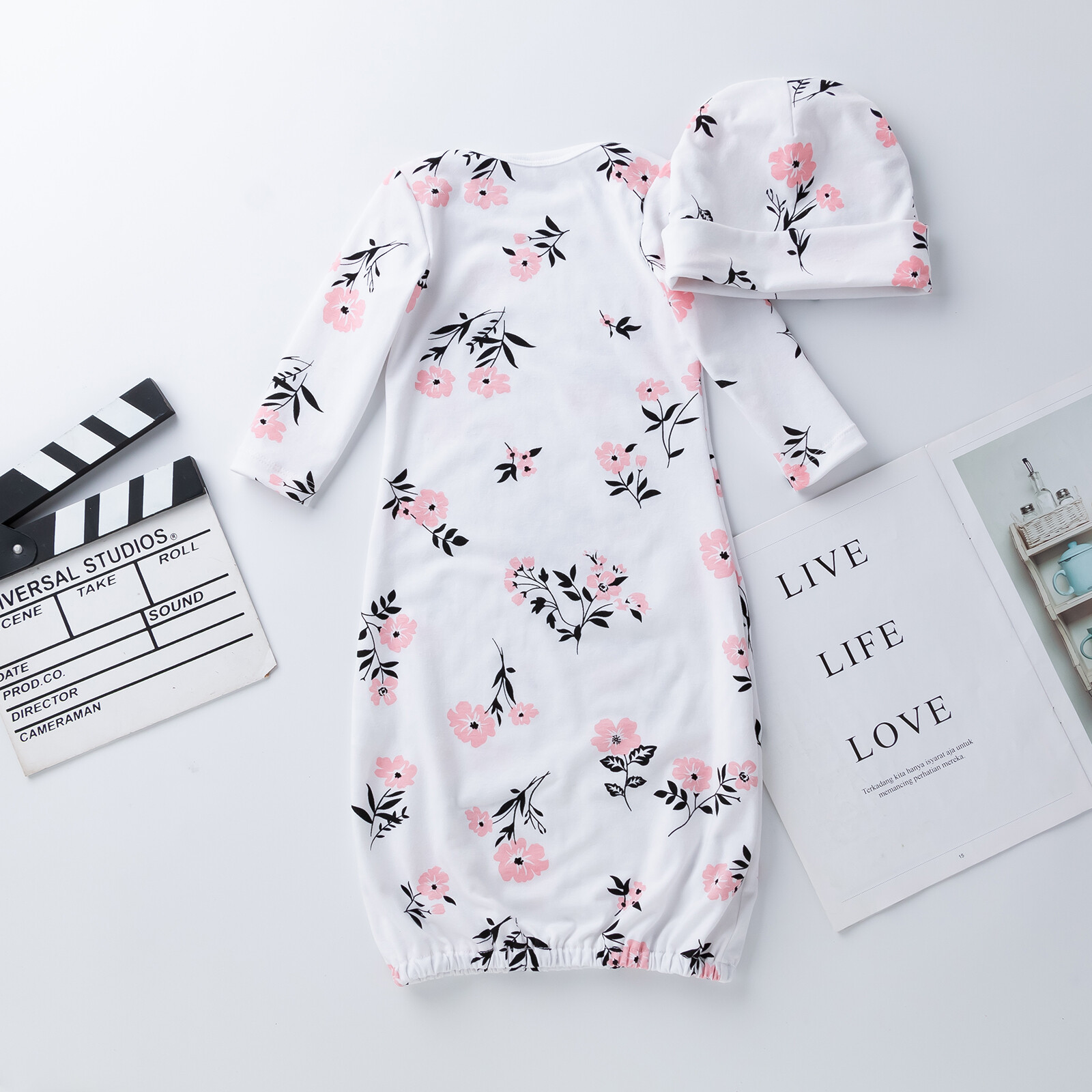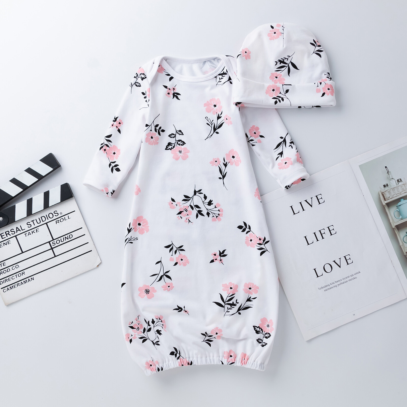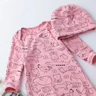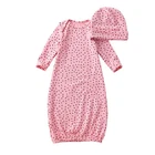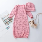 Newborn Baby Girls Cotton Gowns Infant Long Sleeve Nightgowns Sleeping Bag & Hat