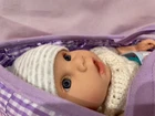This new bundle of joy is ready to go home with your little one! Your child can love and care for Newborn Baby just like a real mom or dad. This dolly's lifelike features and soft body make her look and feel like a real newborn, and she comes dressed in a comfy romper and hat that's perfect for bedtime or playtime. When it's time for bed, tuck baby in with her blankie and say goodnight. This sweet baby also includes a baby nest, a carrier, a coat, socks, a diaper, a bib and a rattle.