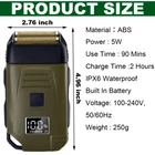 Specifications: Best for hair, beard, stubble, shaved head bump free shaving and super close shaving clean up hair and neck lines for smooth finish cord/cordless shaver shaper a great tool for an extra-close shave on the neck,face and all around the hairline 100-240V voltage,50/60Hz Cord/cordless work powerful and quiet rotary motor gold titanium hypoallergenic foil for irritation-free shaving 2 blade cutting shaving system 600mAh Lithium-ion battery LCD display, charging reminder, battery power percentage reminder contains travel lock function, press and hold the switch for 3 seconds, the machine will be locked, if unlocked, do the same operation USB Line charger model Package Included: 1* T rimmer 1* Protective cover 1* C harger 1* Cleaning brush 1* Manual INSTRUCTIONS FOR USE : 1. Men whose skin is sensitive or easily irritated by shaving, or who suffer from a skin allergy, should test one section on the leg or arm before using the shaver. 2. Remove the protective cover and turn on the unit to start shaving. Hold the shaver at a right angle to the area of your face that you want to shave and run the single shaving foil carefully along your skin. Tip: In general, we recommend that you shave against the direction of hair growth, as this is the best way to trim the hair. Pull your skin tight, with your fingers in inaccessible areas, to achieve optimum results. 3. Do not push the shaver on the skin too hard as it could cause irritation, make the shaver warm and prevent a perfect shave. 4. Please note that it takes 2 to 4 weeks for your skin to adapt to a shaver, so please do not change shaving instruments in this period of time. 5. If hair is longer than 1/32” begin by cutting the hair down first with a trimmer, then use shaver for a smooth close finish.
