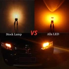 (Set of 2) LED Chip Type: Each T25 base 3156/3157 LED bulb is equipped with 39 pieces high quality, high power with high performance led chips per 3156 3157 LED bulb ---360° full angle illumination light output with projector lens design For LED bulbs draw less currently, extra LED resistors maybe required to avoid the malfunction(like of the turn signal light bulb meets flickering, no light, or error code on the dash board). Compatible with both standard and CK/SRCK socket type. Voltage: 12V - 14.8V, Built in stable current IC driver for longer lifespan. Non-polarity. Fit for 3156, 3157, 3056, 4156, 3047, 3157A, 3057, 3357, 3457, 4057, 4114, 4157, 3757, 3457NAK, 3157AK, 4157NAK, 3157LL, 5702A, 5702AK, 5702AK,p27/7w, 3155, 3047KX, 3157KX, etc Application: Used for upgrading the stock dim incandescent or damaged turn signal directional blinker light lamps, backup reverse light, front side marker light, daytime running light ( DRL), cornering lights lamp for much safer driving and luxury looking for automotive cars, trucks, motorcycles, SUVs, Vans. USA located. Warranty: fully ONE YEAR guaranteed for the manufacturer defect, please check the Fitment Note application position for front or rear turn signal lights use before purchasing. Extra 50W 6ohm LED resistors m maybe required to avoid the signal hyper flash for LED bulbs draw less power than stock lamps. Product Description Alla Lighting 3156 3157 LED Signal, Brake Tail, Reverse Lights, DRL Bulbs The video showcases the product in use. The video guides you through product setup. The video compares multiple products. The video shows the product being unpacked. Alla Lighting best value 3156 3157 LED Lights Bulbs replacement, optional super bright 6000K xenon white, amber yellow and pure red upgrade OEM incandescent or damaged turn signal, brake tail, back-up reverse lights lamps or DRL for auto cars, trucks, SUVs, vans, motors for vision and safety. How to Strobe? Advanced Design AmazonconfirmedFit How to Find the Correct Bulbs for Your Vehicle At Auto Parts' Product's listing, locate amazonconfirmedFit | Make sure this fits If you have input your vehicle's info before, then it will show Fit or Not Fit directly. Please make sure check Fitment Note and Position to confirm this listing is the correct one for your need! If you haven't input vehicle's info before, then please follow the instructions to input and will pop out related Fitment Info , Note , and Position . For a vehicle's different trims, bulbs may vary, recommend check OEM bulb! Advanced Design Premium Alla Lighting T25 3156 3157 LED Lights Bulbs Each bulb is quipped with 39pcs high power and high illumination 2835 SMD LEDs; Built-in smart IC driver for stable current control and longer lifespan; Equipped with projector-lens for fully 360° light output. Equipped with aluminum heat sink for the best heat dissipation. Especially designed for replacing back-up reverse lights, turn signal lights, brake tail lights, daytime running lights(DRL) lamps. What is the cross reference number for this listing? This product will fit OEM bulb's part number: 3056, 3456, 3157, 3057, 3457, 4057, 4157, 3156, 4156, 3155, etc. How many bulbs included per order? Yes, it includes one pair(2pcs) 3156/3157 LED bulbs per order; Color will be based on your selection. If I purchased wrong item or doesn't meet my satisfaction, what should I do? Please let us know (Alla Lighting) directly for expedited support, we are USA located company, headquarter is located in Chino, Ca, USA, and branch office is at Dallas, TX USA. Can I find the correct products for my vehicle directly on Amazon? Sure, Amazon has fitment Guide shows like amazonconfirmedFit | Make sure this fits, please follow the instructions and checked the Notes and Position to see whether it meets your need. What is the return policy? Hassel free return for 30 days since purchase date or extended 60 days for holidays season. Different Alla Lighting LED Reverse, Signal, Brake Tail Lights Bulbs' Comparison Add to Cart Add to Cart Add to Cart Add to Cart Add to Cart Add to Cart Add to Cart Customer Reviews 4.3 out of 5 stars 18,588 4.3 out of 5 stars 3,111 4.4 out of 5 stars 1,552 4.3 out of 5 stars 261 4.4 out of 5 stars 1,150 4.4 out of 5 stars 3,307 4.3 out of 5 stars 2,896 Price $17.99 $ 17 . 99 $17.49 $ 17 . 49 $18.99 $ 18 . 99 $16.99 $ 16 . 99 $19.98 $ 19 . 98 $18.99 $ 18 . 99 $17.98 $ 17 . 98 Application Reverse/Signal/Brake/DRL Light Reverse/Signal/Brake/DRL Light Reverse/Signal/Brake/DRL Light Reverse/Signal/Brake/DRL Light Reverse/Brake Lights Reverse/Signal/Brake/DRL Light Reverse/Brake Lights Optional Colors White/Amber Yellow/Red White/Amber Yellow/Red White/Amber Yellow/Red White/Amber Yellow/Red White/Red White/Amber Yellow/Red White/Red Working Power 5.5W/Bulb 7.5W/Bulb 7.5W/Bulb 7.5W/Bulb 7.5W/Bulb 7.5W/Bulb 5.5W/Bulb Light Output 1000 Lumens/Bulb 1400 Lumens/Bulb 1400 Lumens/Bulb 1400 Lumens/Bulb 1400 Lumens/Bulb 1400 Lumens/Bulb 1000 Lumens/Bulb Wedge Base T25 T20 BA15S BAY15D T25 T25 T25 Strobe Function ✘ ✘ ✘ ✘ ✔ ✘ ✔