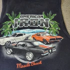 This Newport Blue tank top features a vibrant American Iron print, showcasing classic muscle cars with a tropical background. Crafted for comfort and style. • Sleeveless • Crew neck • Vibrant graphic print • 100% cotton • Machine washable • Relaxed fit • Muscle Beach theme Top to bottom = 29 inches Side to side = 23.5 inches