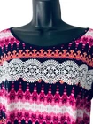 ••• LIKE NEW….FLAWLESS Condition ••• ATTENTION ••• Some Photos will appear a different color on different devices. If you have questions regarding the true colors of the item, please just ask! ••• ATTENTION: Please note the below measurements. Not all apparel brand’s sizing are the same! ••• APPROX. MEASUREMENTS BUST: Non-Stretch Pit to Pit: 24” LENGTH: 29” ••• The FABRIC CONTENT and FABRIC CARE INFORMATION is LOCATED in the “ABOUT THIS ITEM/ITEM DETAILS section which is located directly above to give you more specific details on this item••••• If you have any additional questions, please don’t hesitate to contact me! ••• SHIPPING POLICY ••• I offer combined shipping for multiple orders!!! We ship orders Monday through Friday, excluding Federal Holidays. We have a 24 hour window between the payment received and the item being shipped. However, depending on the time that payment is received, it could be shipped the same day. **** If you have any questions about this item, or any other item that I’m selling, please contact me and I will respond back to you ASAP! •• RETURNS Accepted if within 30 days from purchase. Buyer to pay for return shipping. Thank You! ••• If for any reason you have an issue with your purchase, just contact me and I will respond back you to ASP! This pretty Newport top is perfect for any occasion, whether you're traveling, going to work, or just running errands. The navy, pink, and white abstract print is eye-catching and the crochet trim adds a touch of elegance. The blouse has a round neckline, short sleeves, and a single button back closure. Made of polyester and spandex, this knit fabric top is comfortable and stretchy. It is machine washable, making it easy to care for. The keyhole back neck and casual sleeve type add to the versatility of this blouse.