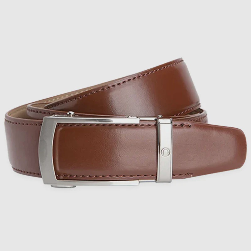 [tab name="Description"] We've changed the buckle design and named it Jarrod in honor of Jarrod Lyle. It's a modern interpretation of our previous buckle. We also changed the strap stitching to match the leather. Gunmetal buckle Buckle size 1 5/8" x 2 5/16" The belt strap width is 1 3/8" Ratchet belt fits up to 45" waist