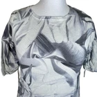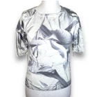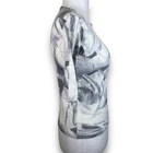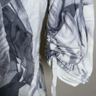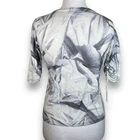 Next UK 12 Patterned grey and white top with ruched sleeves with tie up design. Stretchy material. Approx measurement: Pit to Pit 21” Length 22” Good Preloved Condition