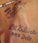 Here is a nice looking lightly used vintage mid 1960's USA made Wilson made Al Kaline model A2250 baseball glove for a Right-Hand thrower and thus fits on the left hand. Kaline was a right-handed thrower. The mitt is youth sized measuring 10.25" long through the pocket. The glove fits my adult hand OK. The glove has been broken in. This appears to be a rare model number for a Kaline glove, so you probably need it if Kaline was your guy. It also has Tournament stamped on the back of the thumb which I haven't seen before. I could not find this model number in any glove catalog info I have, but I assume it is a midline to lower quality glove. It has very soft and supple leather. Sometimes the glove companies would make a line of gloves for certain chain stores to sell, and they would give them different model numbers so they could easier track numbers of gloves sold, etc. Stamped on the front of the mitt is the Pro-Lock Web, Hand Formed Grease Set Pocket, Al Kaline (facsimile signature), Pro Style, A2250 Wilson, Made in U.S.A. and Snap Action. On the back is stamped Made in USA (in circle), Tournament, Nylon Stitched (a little hard to read on the backstrap), Wilson, Hold Tite Strap, Pat. No. 2231204, Canada - 398340-1941 and licensed under U.S. Pat. No 2722007. There is a faint marker name on the backstrap just below the Wilson stamping. It appears someone tried to rub it out and that's why there's wear there and not the rest of the glove. The glove is broken in and has soft exterior and interior leather. The front of the glove looks great and everything on the back looks nice except for the backstrap, which shows wear on the backstrap and soft vinyl cloth piping. The backstrap leather is still soft. The interior and exterior leather are soft and flexible. No chafing on the interior leather. The leather lacing appears to be original and is intact. The stamping on the front and back is all readable, with the Nylon Stitched stamping on the backstrap being the hardest to read. The leather lace sticking out between the pinky finger and the ring finger has now been tied off. Al Kaline played all of his 22 seasons (1953-1974) in the Major Leagues with the Detroit Tigers. He was a right-handed outfielder. He was an 18 time All-Star and won 10 Gold Gloves. Kaline was inducted in the MLB Hall of Fame in 1980. He was a big member of the 1968 Tigers World Series champions that beat the St. Louis Cardinals. He was the 1955 NL batting champion with a .340 average. He ended up with 3,007 hits, 399 homers and a .297 career batting average. I have other gloves and mitts on eBay now as auctions and/or Buy it Now, and I like to combine shipping whenever possible. If you win more than one glove on an auction, I'll send you an auction for the combined shipping amount. If you win Buy it Now items which require immediate payment, you'll have to pay the total shown and then when I now the total combined shipping cost, I'll refund you the difference back on the price through eBay.