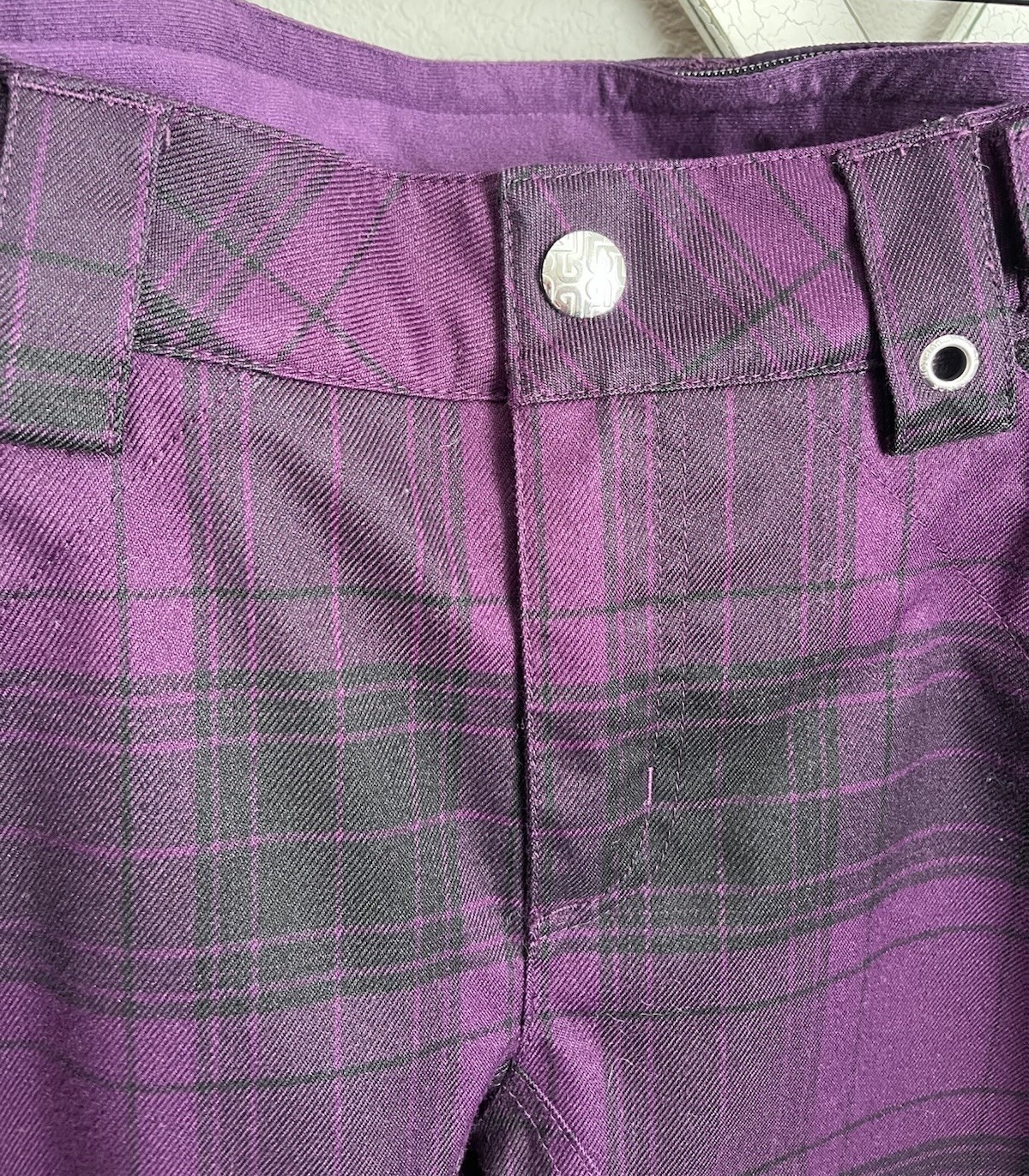 Burton DryRide Chase Women's size Medium Ski Snowboard Pants Purple plaid Lined but not insulated 31" inseam Boot gaiters Zippered inner leg vents Great pre-owned condition - minimal wear!