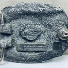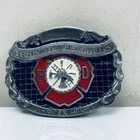 This belt buckle, featuring a design honoring firefighters, is made of metal with a silver or grey finish. It is geared towards men who admire heroes, symbolizing the bravery and dedication of American firefighters. The buckle measures 3 inches and is crafted by Buckles of America, making it a stylish accessory for those who appreciate the sacrifices made by these essential first responders.