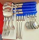 This is a set of four stainless steel flatware pieces made in China. The set includes spoons, knives, and teaspoons. These pieces are versatile and can be used for everyday dining or special occasions. The material is durable and long-lasting, ensuring that you will be able to use these pieces for years to come. Add this set to your kitchen collection and enjoy the convenience and style it brings to your dining experience.