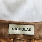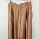 Nicholas Pants Women's 4 Carmel Pinstripe Wide Leg Trouser Pleated Work Business - Pre-Owned in Very Good Condition - Measurements in Photos - Returns acceptable within 30 days of purchase unworn, in original condition - Check out my E-bay Store. Lots of Choices Available. Reduced shipping for 2 or more items. Let me know before you pay so I can send you an invoice to discount the shipping