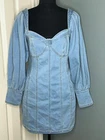 Nichole Lynel Denim Off Shoulder Sweetheart Neckline Puff Sleeve Mini Dress NWT POCKETS Condition: Brand new with tags; no flaws Size: Women's Medium Retail Price: $105.00 Color: Blue Material: Cotton / Spandex / Polyester blend - lots of stretch for body hugging curves Off shoulder fit or can be worn as cap sleeves Mini length Sweetheart neckline Puff sleeves Rear zip closure On seam side pockets Hand Wash Cold Imported All measurements provided in photos are approximate only. Non-smoking and pet free environment. Fast shipping.