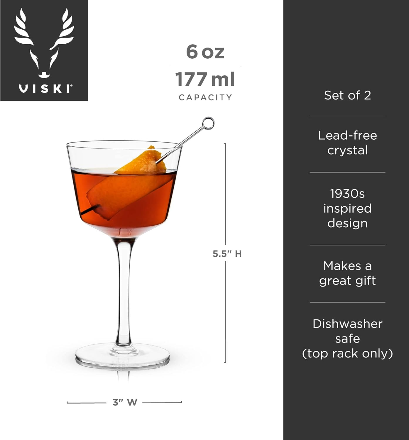Store New Arrivals Add to Favorite View Feedback Viski Nick and Nora Glasses, Stemmed Drinkware, Premium Crystal Cocktail Glasses, Cocktail Coupe Glasses, Home and Bar Glass Cups, Set of 2, 6Oz Description Item model number 6424 Reusability Reusable Style Nick & Nora Glasses Number of Items 2 Pattern Letter Print Theme Wedding Unit Count 2.0 Count Brand Viski Age Range (Description) Adult Is Discontinued By Manufacturer No Included Components Angled Crystal Nick & Nora Glasses by Viski® Occasion Home Item Weight 0.19 Pounds Customer Package Type Standard Packaging Item Weight 3.04 ounces Material Feature Recyclable Special Feature Premium Color Nick & Nora Material Glass Capacity 6 ounces Global Trade Identification Number 00842094164240 Shape Round Recommended Uses For Product Home Manufacturer True Brand - BISS Product Dimensions 3"W x 5.5"H Product Care Instructions Dishwasher Safe (top rack only) Size 1 Count (Pack of 1) COUPE GLASSES FOR CONNOISSEURS - This classic cocktail glass makes a refined addition to an at-home bar set or kitchen. Arguably a barware essential, this set of stemmed coupe cocktail glasses gives your home bar some Old Hollywood panache. ENJOY A 30s TAKE ON THE ICONIC COUPE SHAPE - We gave the curves of this coupe cocktail glass an Old Hollywood twist that perfectly shows off liquor. The bowl to stem and base ratio creates a perfectly balanced glass that is comfortable to hold. A VERSATILE HOME BAR ESSENTIAL - Coupe cocktail glasses can be used as cocktail glasses, dessert glasses, for espresso drinks and more. Think of the coupe glass as a modified martini cocktail glass that can be used in arguably more applications. THE PERFECT GIFT FOR OUTFITTING A NEW HOME - Anyone who cares about a good drink experience needs stylish glassware. Give this set of 6 oz coupe glasses as a graduation gift, housewarming gift, or wedding gift and help someone build their perfect bar. PROFESSIONAL QUALITY BARWARE AND GLASSWARE - Stunning materials and giftable packaging define our bar tools and glassware. We vet our products with our professional bartender community to make sure they look beautiful and work perfectly. Toast to the style of the 1930s with these cocktail coupes inspired by Nick and Nora, the crime-solving duo from the wildly popular Thin Man detective films. Sip a classic cocktail (or 3) in these elegant glasses, and who knows--maybe you’ll be sporting a pencil mustache and solving crimes in a tuxedo with a cute dog in tow. • Lead-free crystal glass • Angled cocktail glasses • Set of 2 cocktail coupes With a delicate shape and feel, this set of cocktail glasses feels as good in your hand as they look on your bar. Mix a dry martini or your own brilliant craft cocktail invention with some friends, and don’t forget Nick Charles’ famous advice: shake that martini to the rhythm of the waltz. ABOUT US We offer the best prices around on high quality products. Our E-store includes media such as books, movies, music and games while offering electronics, toys, sporting apparel, clothing, tools, general home, garden items and more. SHIPPING We are always working hard to ensure your package arrives as soon as possible. Please understand that some factors like weather, high postal traffic, and the performance of shipping companies are outside of our control. We offer free shipping to the lower 48 states and ship within 2 business days of payment, usually sooner. We do not accept P.O. Boxes. Please provide a physical address. RETURNS We offer a 30-Day Return Policy on items which you are not completely satisfied with. You have the option for a full-refund or an exchange of the item. No returns are available on items shipped outside of the USA. PAYMENT We accept PayPal. CONTACT US This page content is yet to come Please ad us to your favorite seller and visit again later Thank You