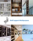 Shelf Pegs Size: Shelf pins fits all cabinets with 1/4 Inch holes.L-shaped bracket diameter is 1/4 Inch(6.35mm) , pin length is 8 mm/ 0.315 inch, and the shelf rest is 19 mm/ 0.74 inch in length, 13mm/ 0.5 inch in width.Each shelf peg can safely support 20 pounds Premium Material: Cabinet shelf pegs are made of quality steel with a nickel plated finish.surface is smooth without burrs, will not easily rust and oxidized. Design: "L" shaped design engages the side of the shelf, forcing the pins to remain in the holes. Screw hole allows you to permanently install shelves (screw not included). Wide Application: Shelf Pins install easily by hand,you can use them for cabinet, bookshelf, display cabinet, furniture, wardrobe, closet, cupboard, bookcase, pantry shelving, meet your daily needs. Quality Commitment: We stand behind the quality of our products. If for any reason you are not satisfied with your purchase, please contact us. We provide a 60-day money-back and 12-month warranty. 100% Satisfaction Guarantee for risk-free shopping! 45 x L-shaped bracket supports Material: Nickel plated good quality steel L-shaped bracket diameter: 6.35 mm/ 0.25 inch L-shaped bracket pin length: 8 mm/ 0.3 inch L-shaped bracket shelf rest length: 19mm/ 0.74 inch L-shaped bracket width: 13mm/0.51 inch Color: Silver