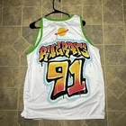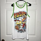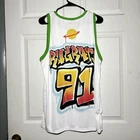 Step up your casual wear with the vibrant Nickelodeon Rugrats Tank Top Basketball Jersey. Featuring everyone's favorite baby burglars, Tommy and Chuckie, this jersey is a must-have for any '90s cartoon fan. The multicolor graphic print brings a playful touch to your wardrobe, perfect for making a statement at the beach or a casual hangout with friends. Crafted for comfort and style, this regular fit, size large jersey is designed with a classic cut and made from soft, breathable fabric. Whether you're hitting the court or just chilling out, this piece from the iconic Character Family series adds a fun twist to your attire without compromising on ease and versatility.