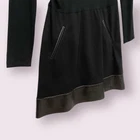 This Nicole Miller dress is a must-have—luxurious lamb leather hem adds a high-end touch, while the stretchy jersey fabric keeps it incredibly comfortable. The mock neck and zip closure give it a sleek, polished look, perfect for both work and evenings out. The ruching detail flatters every figure, and the fully lined construction ensures a flawless fit. It’s effortlessly chic, versatile, and worth every penny!